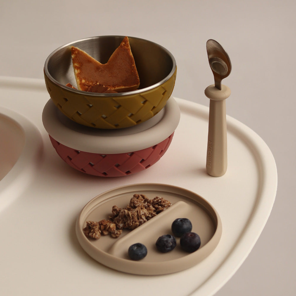 Built in features help tips and spills, meroware is designed to be handled by toddlers independantly. Chubby shapes are easy to hold and intuitive to use.