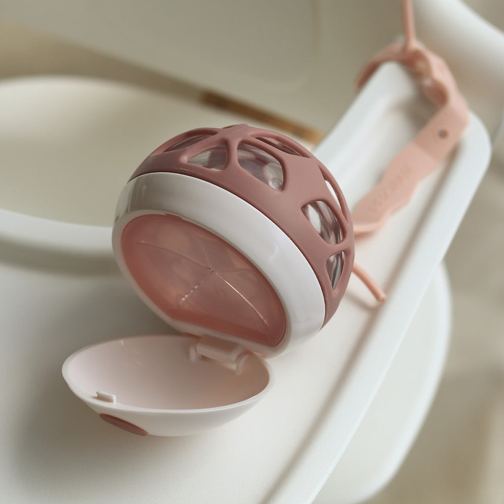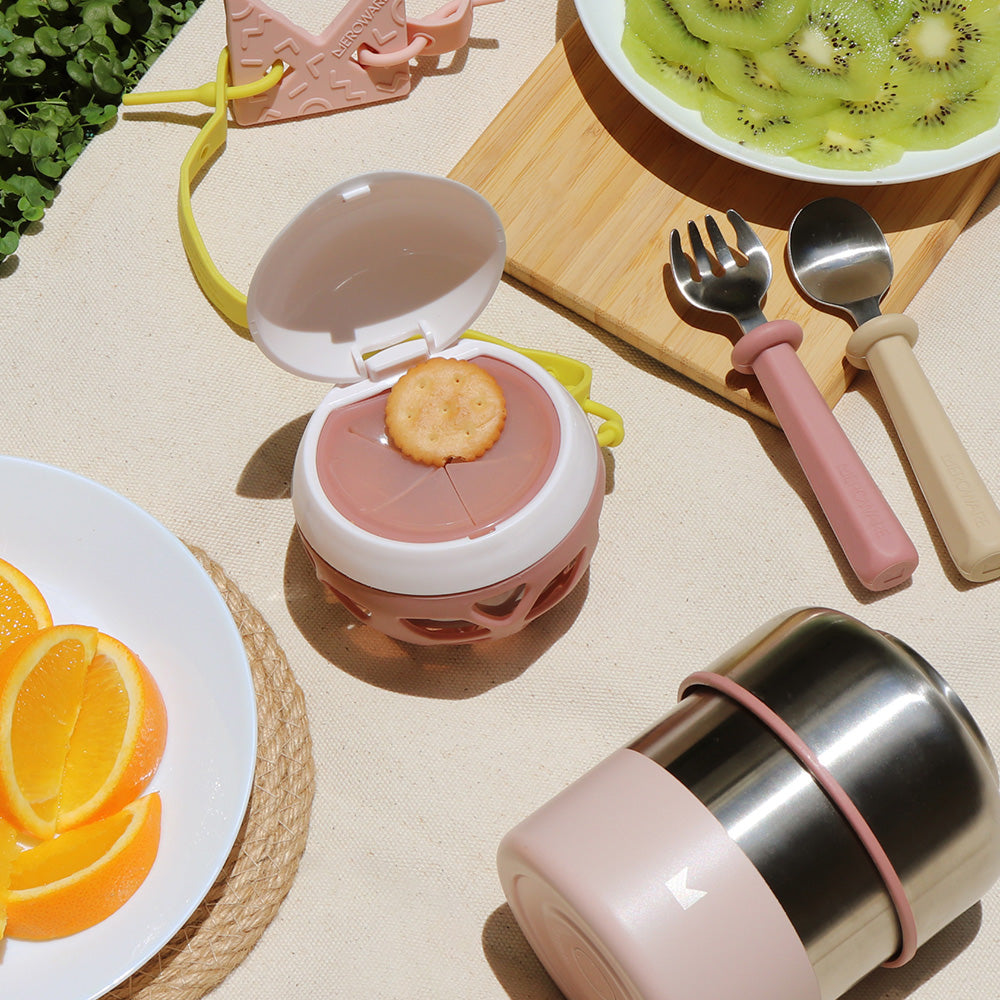 おやつの時間に感覚的な遊びができるELLE スナックボールは、単なるおやつケースではありません。ボールの形をしているので、転がったELLEを子どもたちは自分から手に取って、握り方を楽しく学ぶことができます。