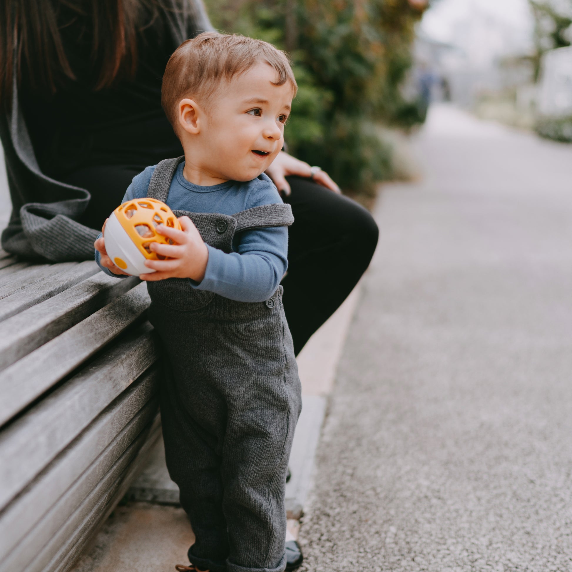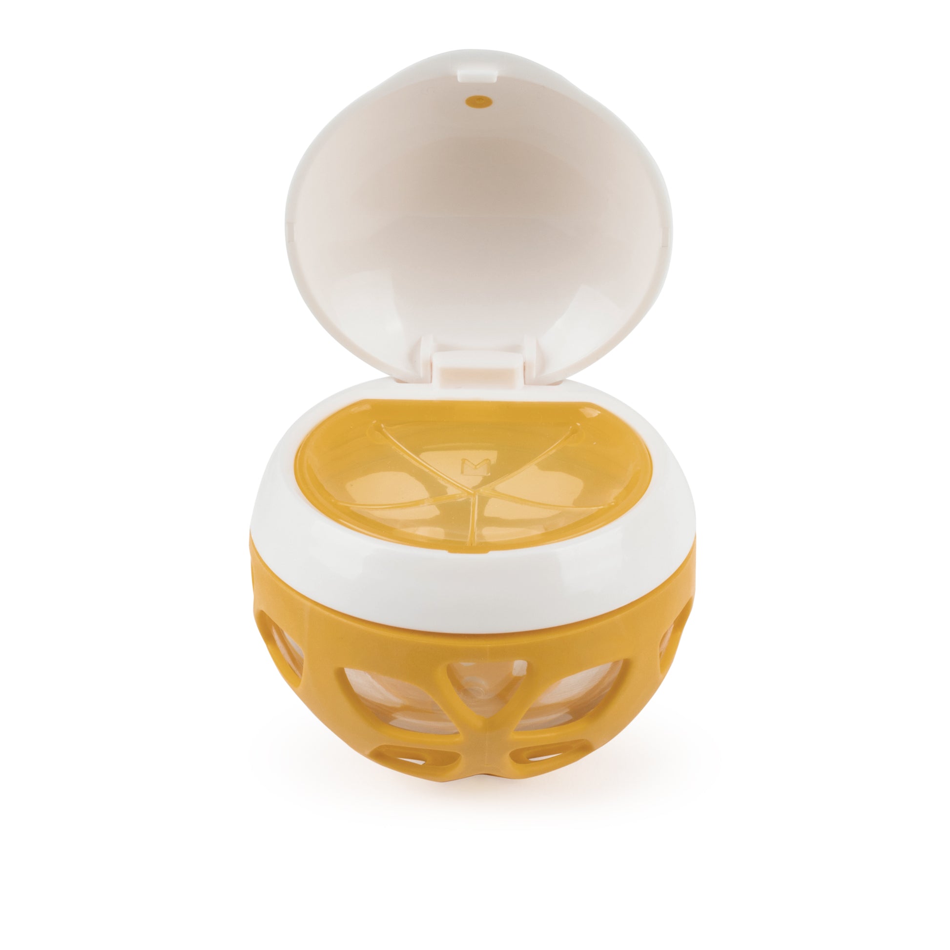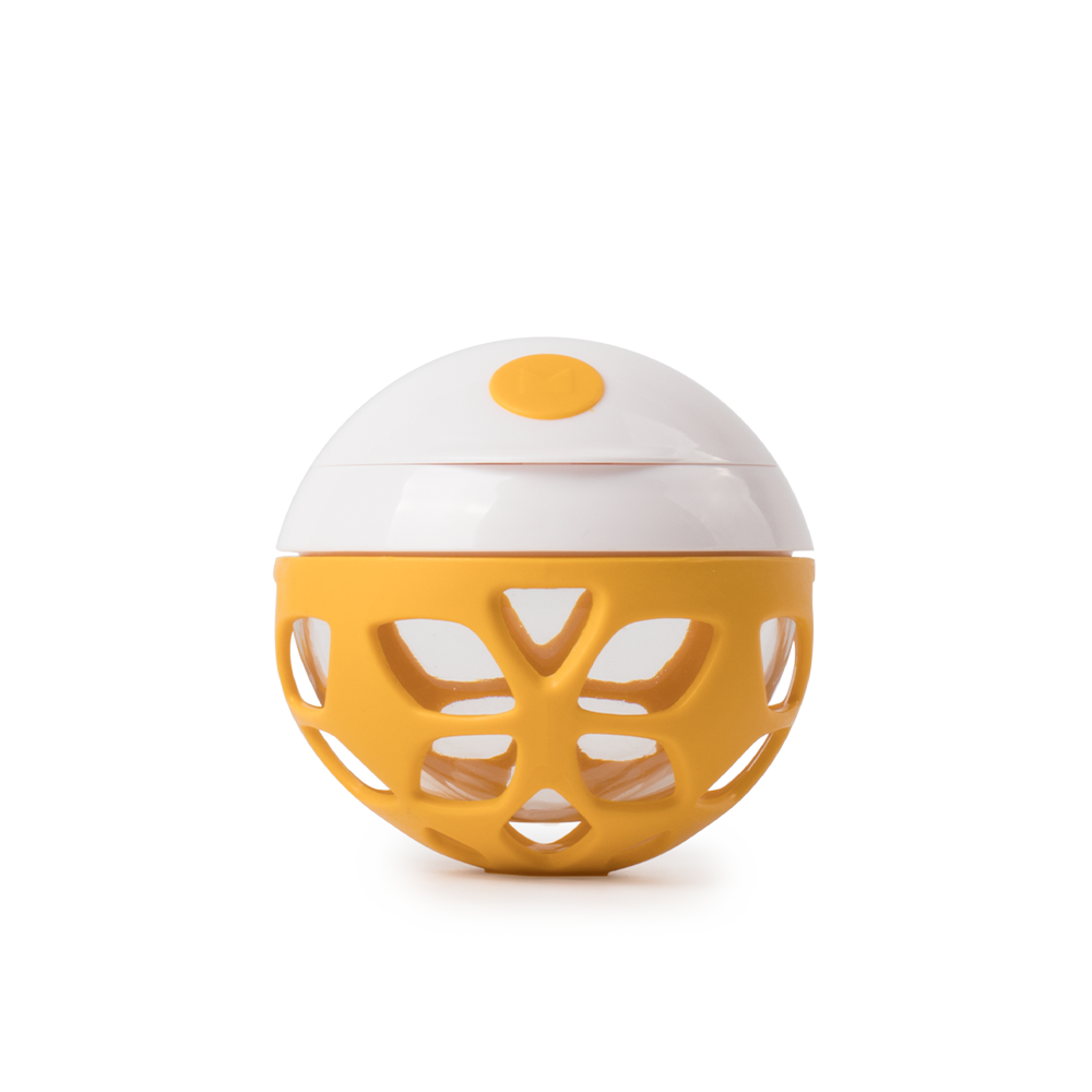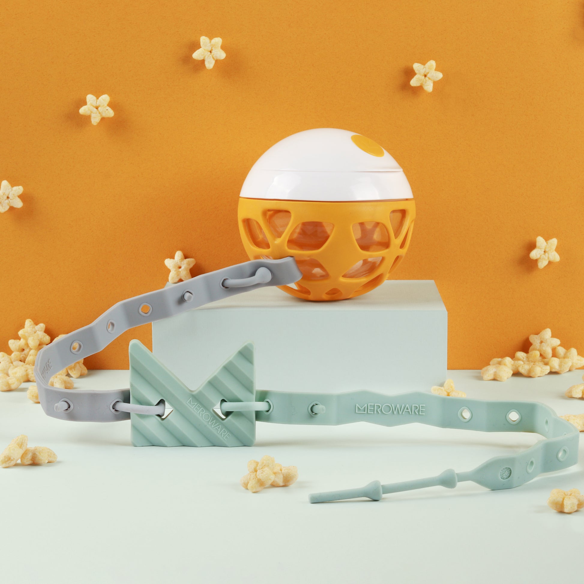 おやつの時間に感覚的な遊びができるELLE スナックボールは、単なるおやつケースではありません。ボールの形をしているので、転がったELLEを子どもたちは自分から手に取って、握り方を楽しく学ぶことができます。