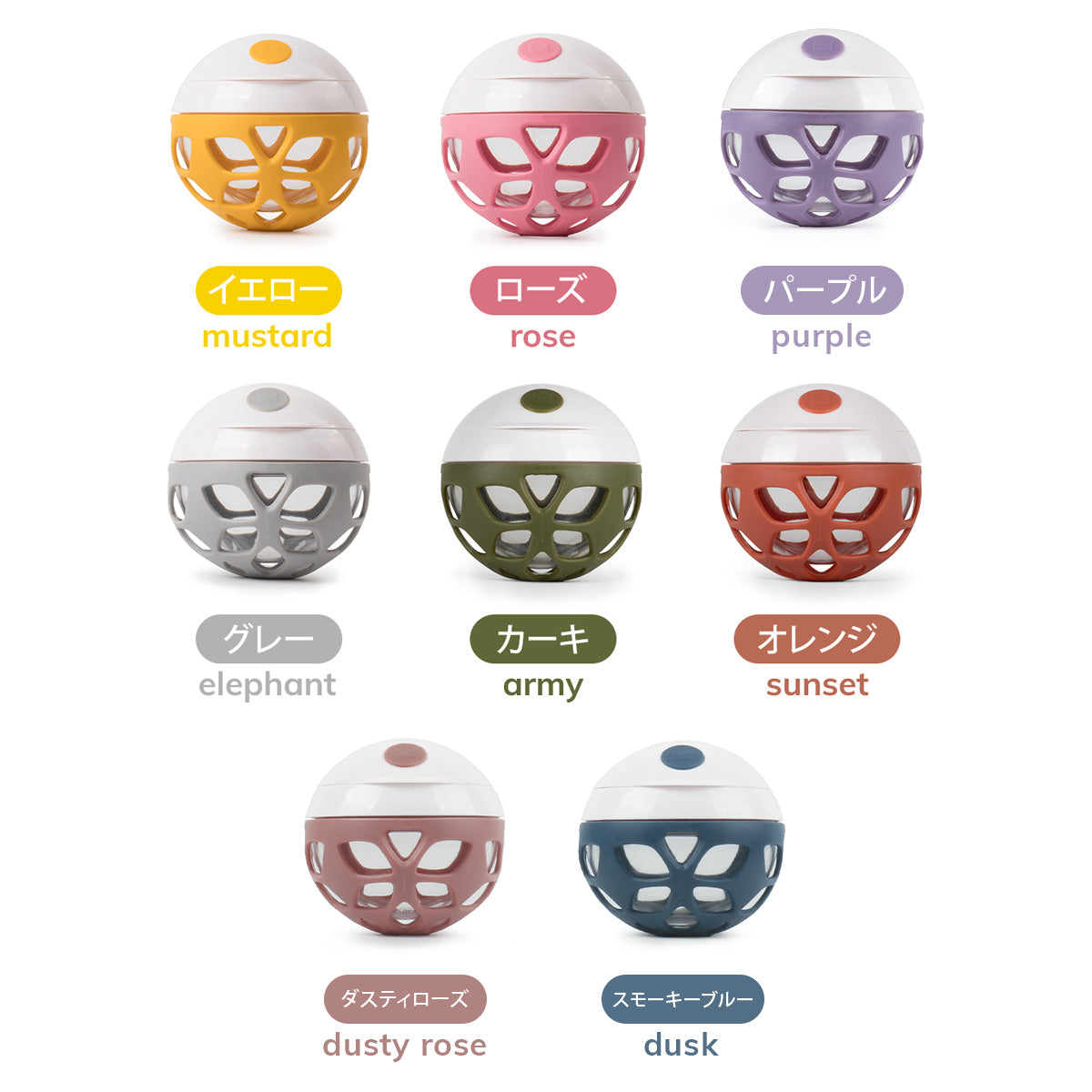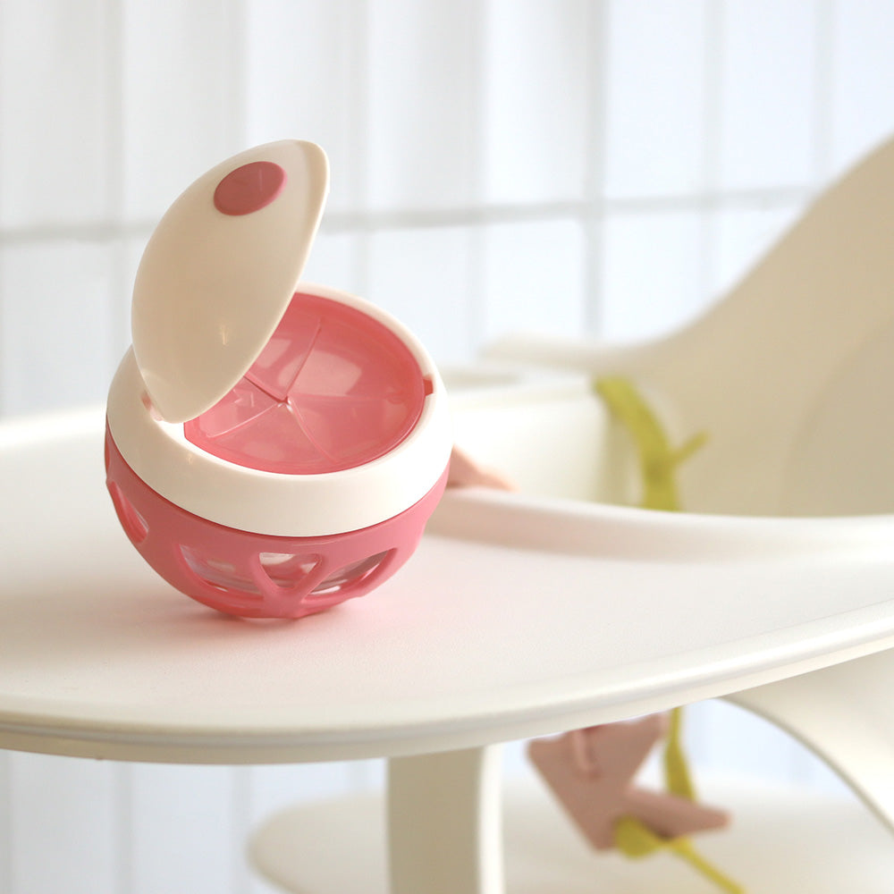 おやつの時間に感覚的な遊びができるELLE スナックボールは、単なるおやつケースではありません。ボールの形をしているので、転がったELLEを子どもたちは自分から手に取って、握り方を楽しく学ぶことができます。