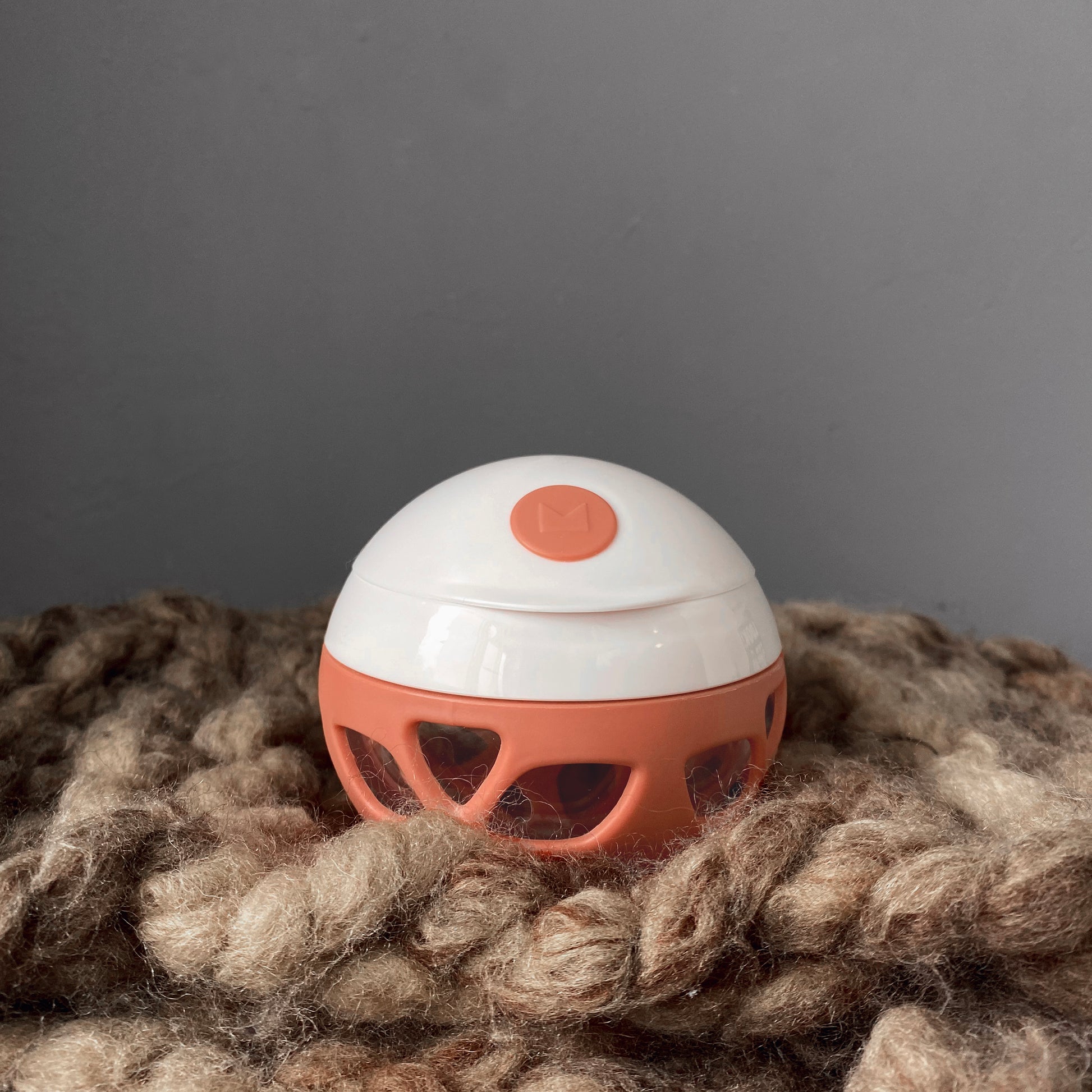 おやつの時間に感覚的な遊びができるELLE スナックボールは、単なるおやつケースではありません。ボールの形をしているので、転がったELLEを子どもたちは自分から手に取って、握り方を楽しく学ぶことができます。