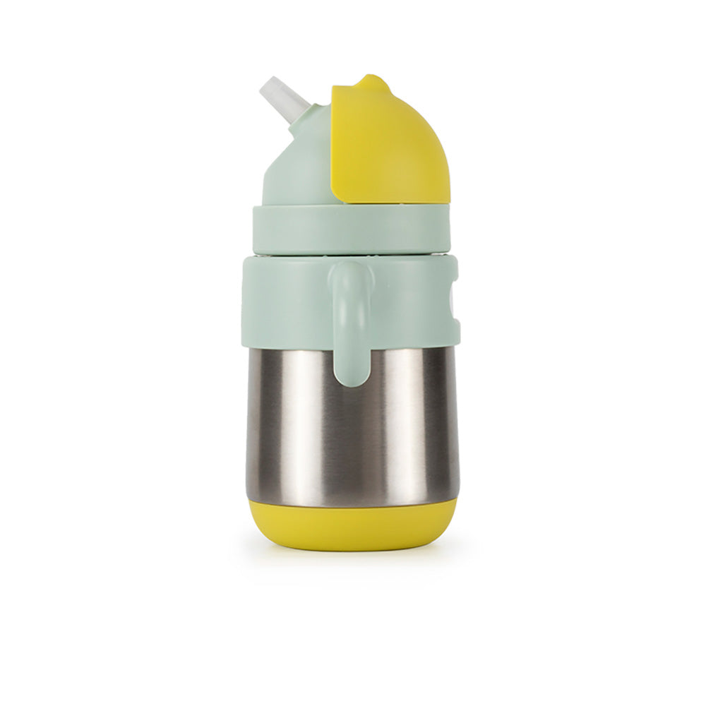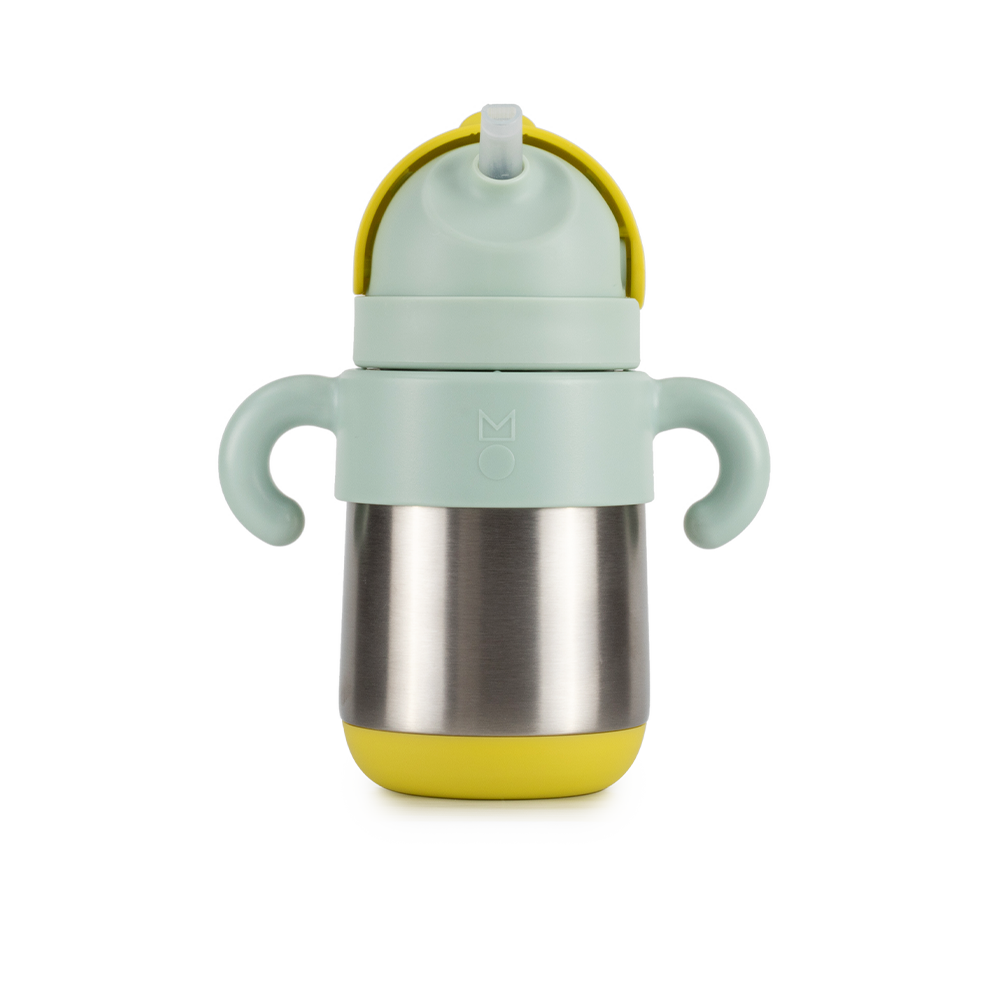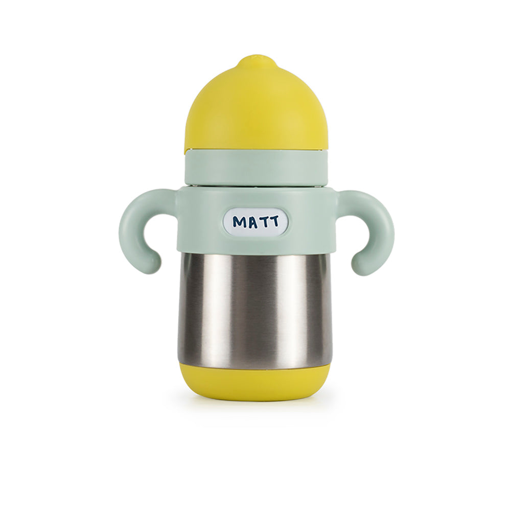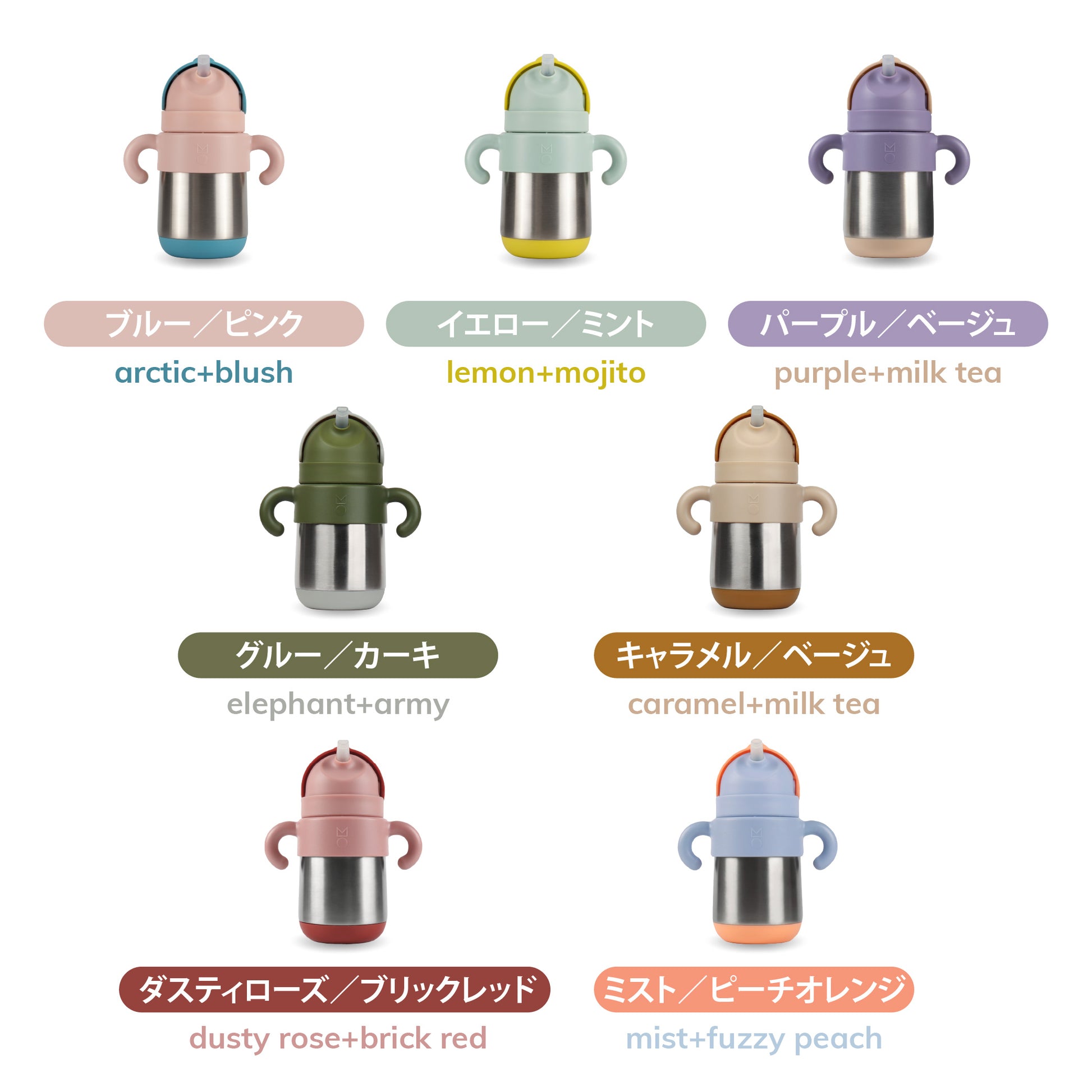 幼児期に入った赤ちゃんから使えるこのステンレスボトルは、子どもが自分で持てる重さで、万が一落とした時のために底面が補強されています。