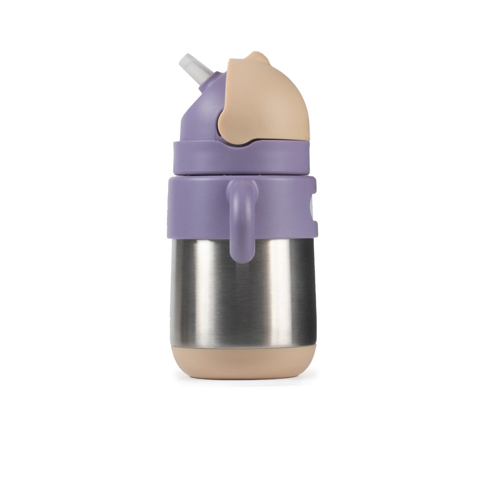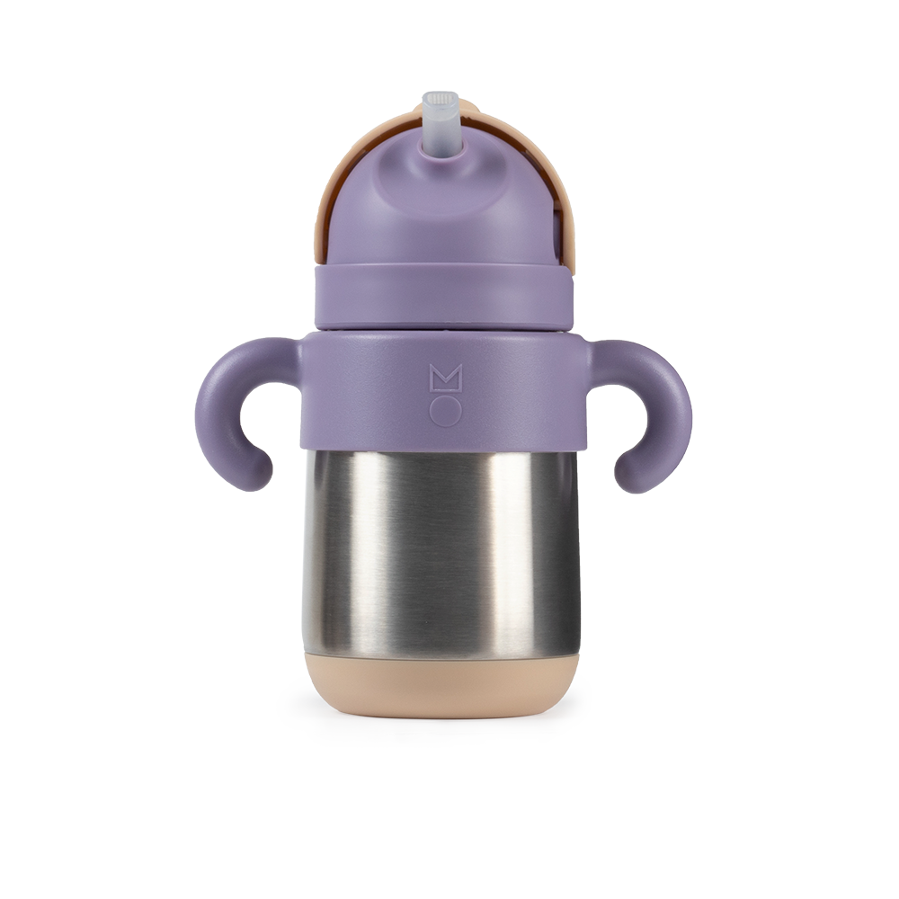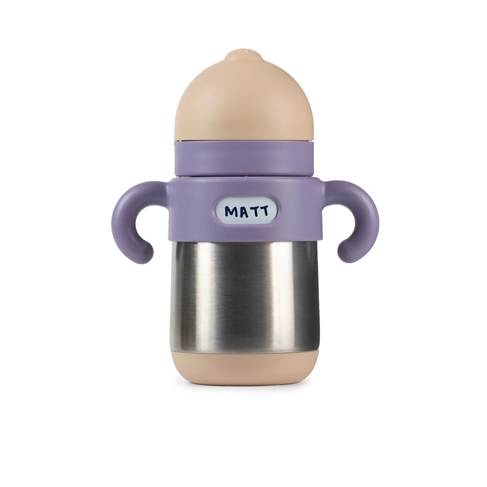 幼児期に入った赤ちゃんから使えるこのステンレスボトルは、子どもが自分で持てる重さで、万が一落とした時のために底面が補強されています。